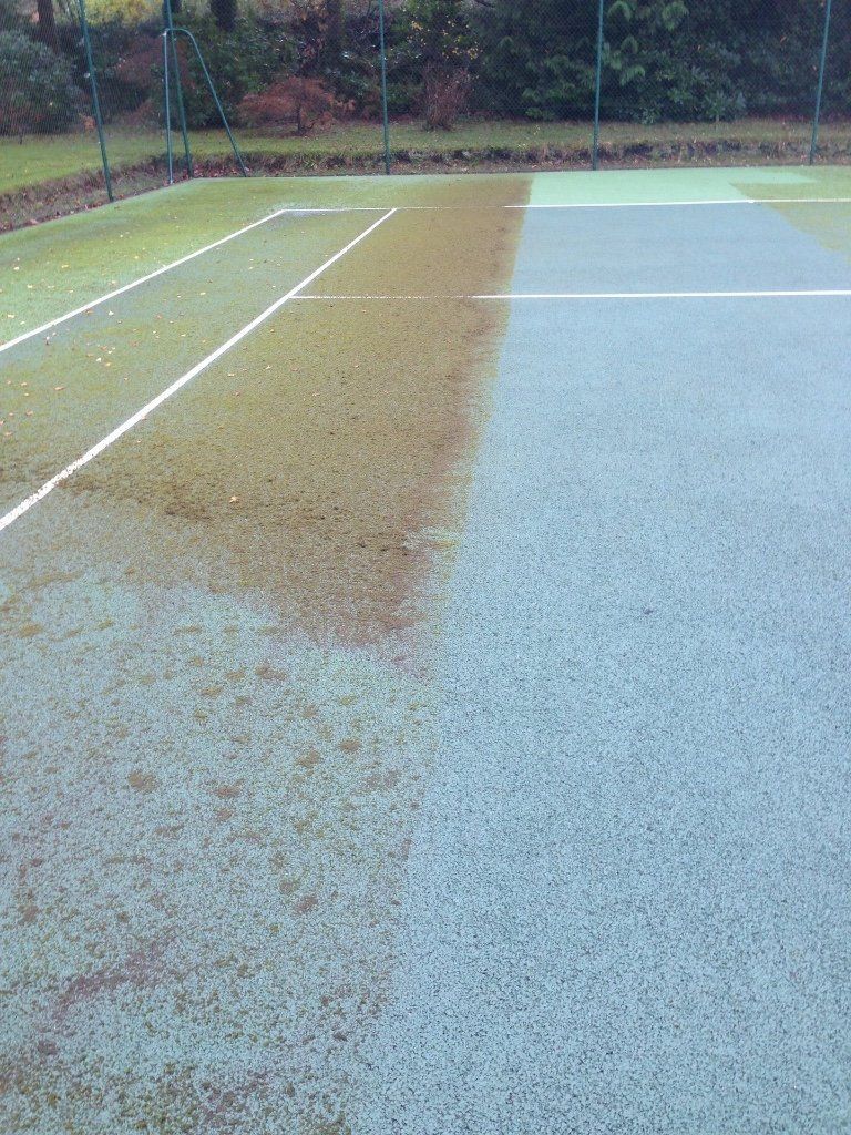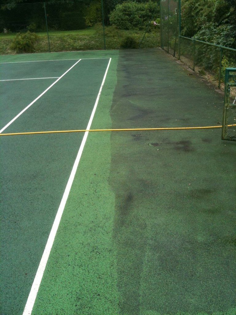 We can ofer a professional cleaning service for hard court surfaces, this is important to remove the build-up of organic matter and help the surface drain, cleaning should only be carried out on a 5-6 year basis, depending on the environment surrounding the tennis court.