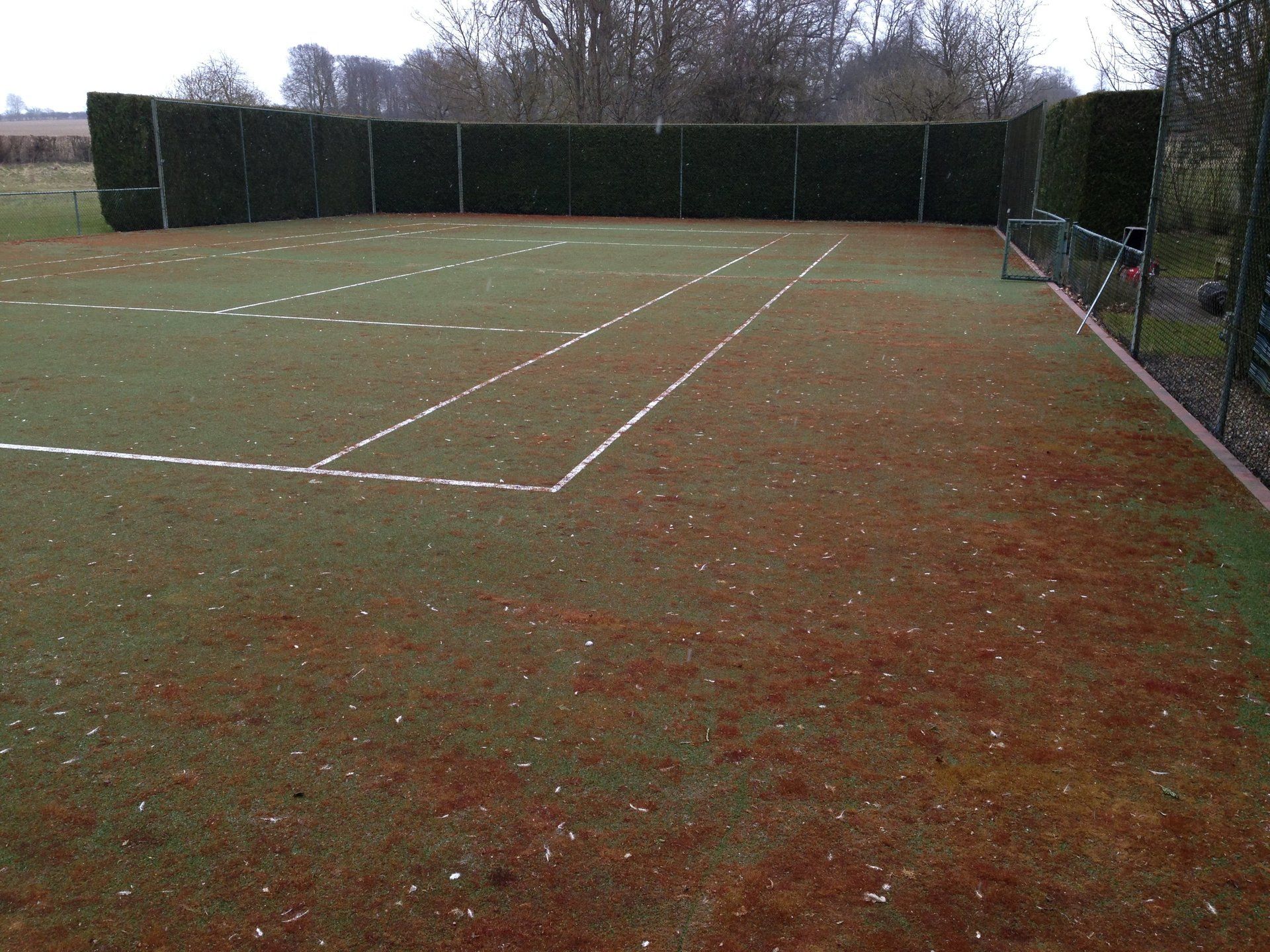 A herbicide treatment will protect your court from moss, algae and weed problems, it is part of a management plan to prolong the life of the tennis court and reduce the frequency of cleaning. The treatment is suitable for hard, artificial grass, synthetic clay, real clay, rubber and acrylic courts.
